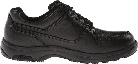 The Dunham Windsor Oxford offers a classic look with a lightweight feel. With a cushioned midsole and adjustable lace closure, this shoe provides support while remaining comfortable. Made with a full-grain leather upper and waterproof construction, it is also slip-resistant for added safety.