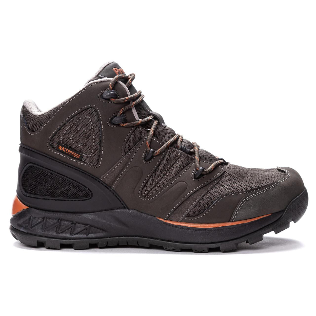 Conquer rugged terrain with confidence in the Propet Veymont hiking boot, engineered for serious traction and all-weather protection. Featuring Vibram® Arctic Grip AT outsoles, these hikers deliver exceptional grip on wet, icy, and challenging surfaces—keeping your footing secure on steep descents and slippery trails. The waterproof construction shields your feet from rain, snow, and stream crossings, while the gunsmoke and orange colorway blends durability with visibility on the trail. Built for hikers who demand reliable performance in unpredictable conditions.